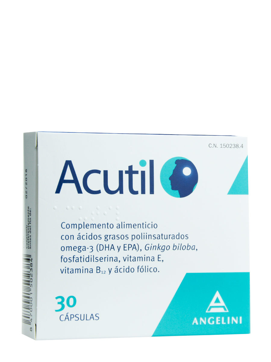Acutil es un suplemento alimenticio en forma de cápsulas que ayuda a mejorar la concentración y la memoria.