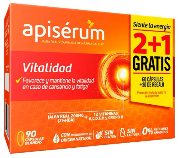 / Apiserum Vitalidad 3 envases x 30 cápsulas blandas complemento alimenticio