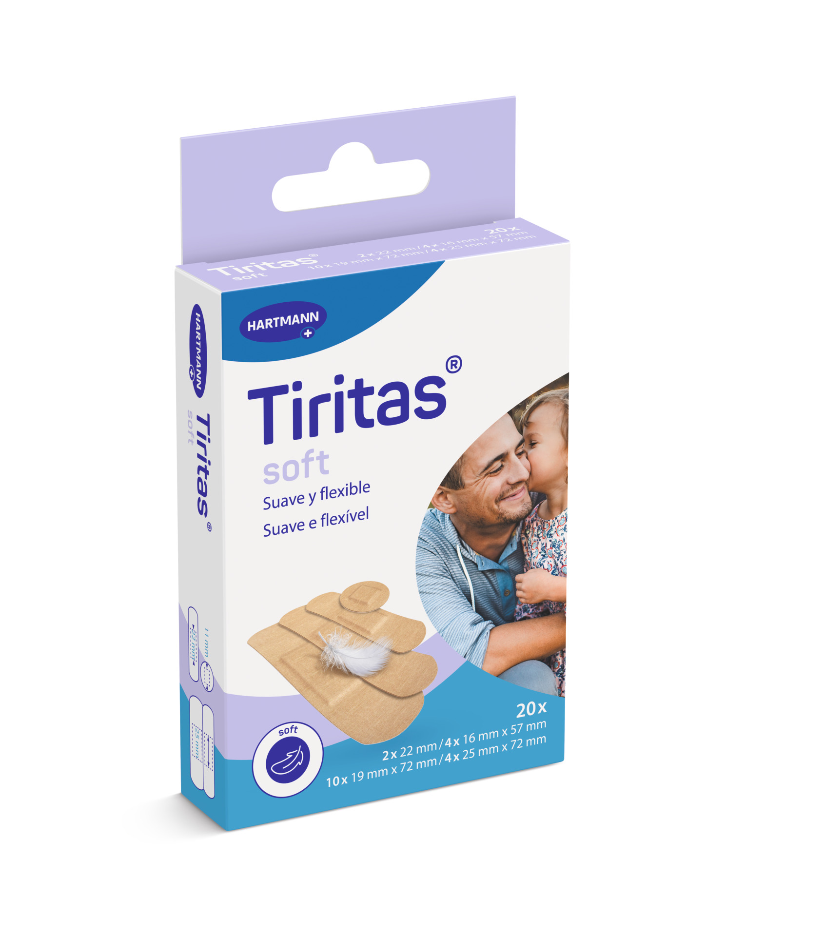 • Apósito adhesivo suave tipo tela/blanco en formato recortable.