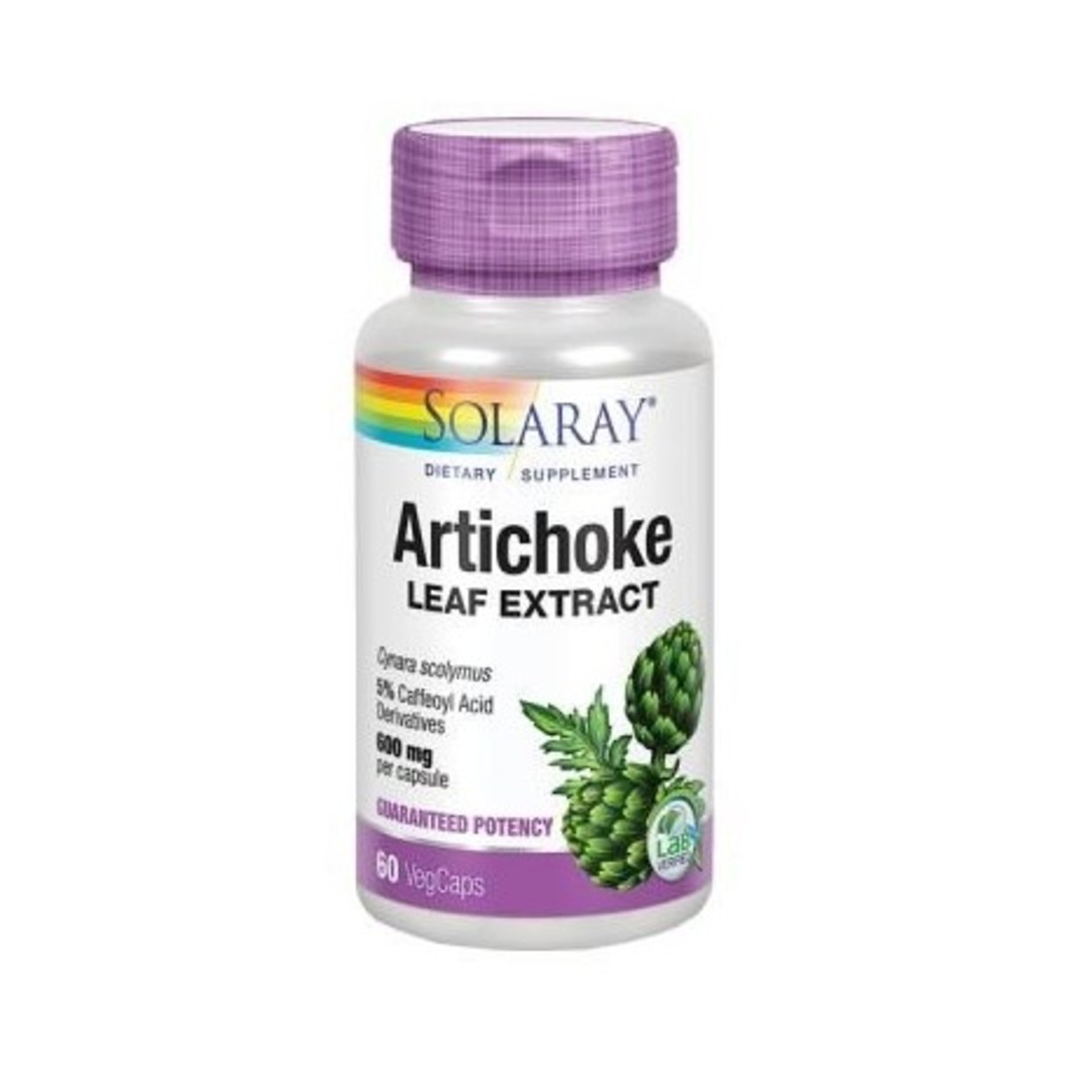 Cápsulas de alcachofa de 300 mg de Solaray, ideales para ayudar a la digestión y el metabolismo.