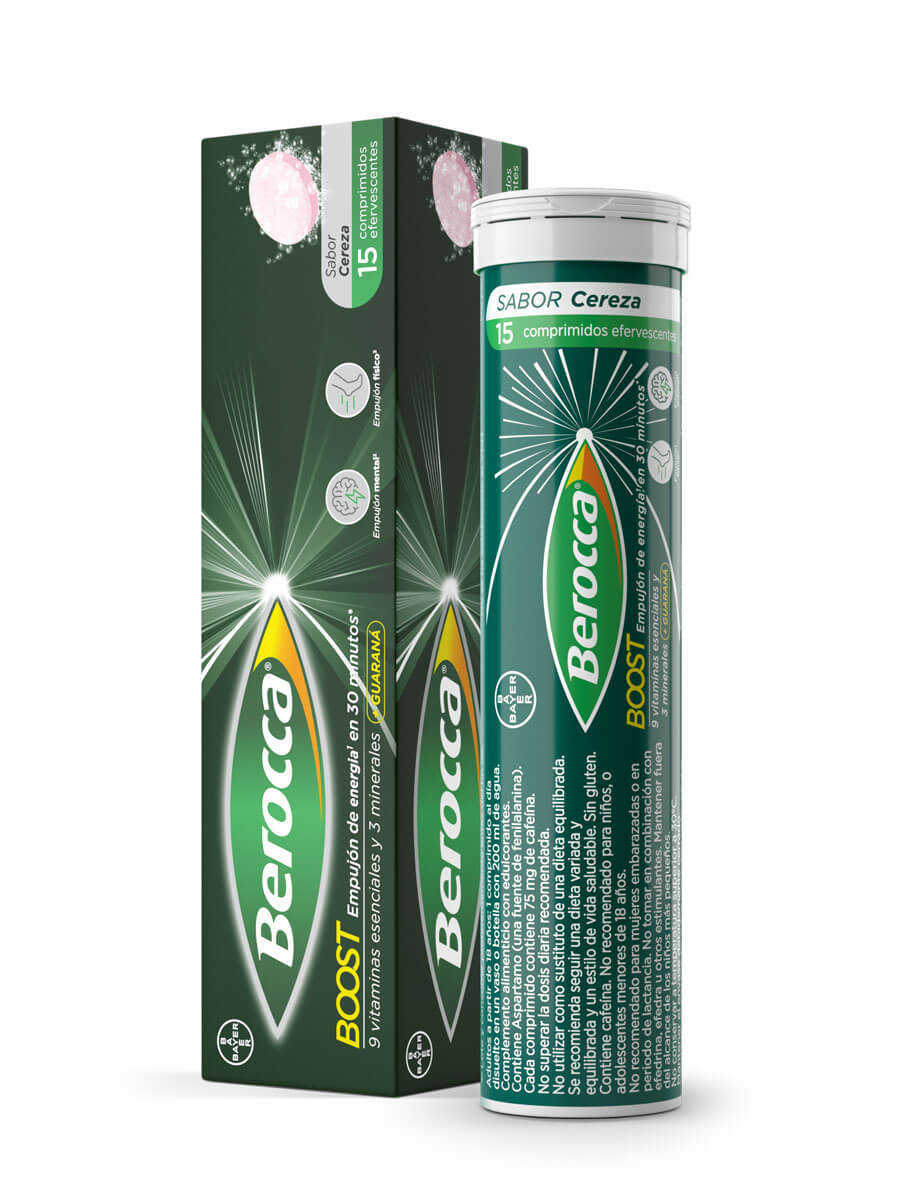Más info de Berocca Boost Sabor Cereza 15 Comprimidos Efervescentes