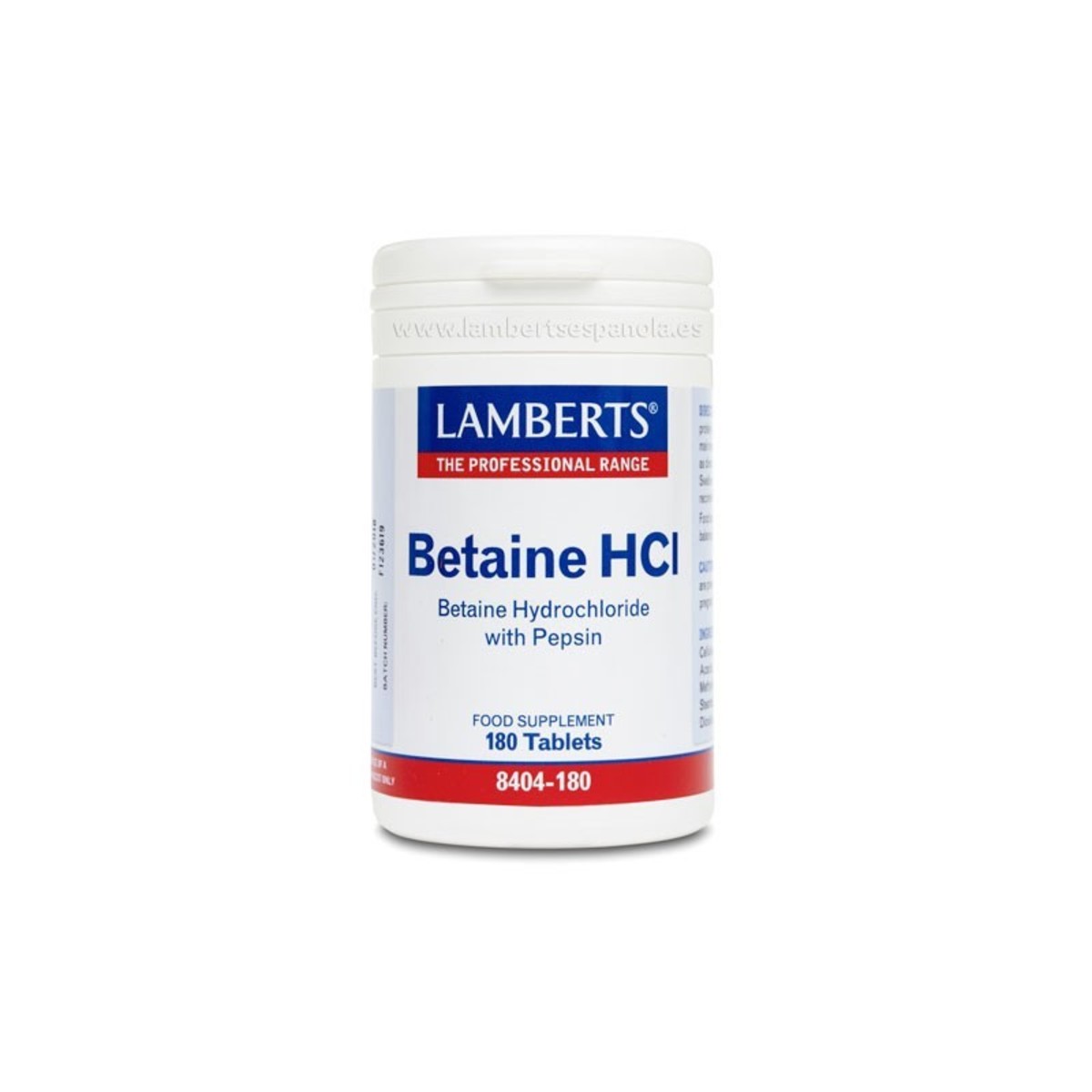 Comprimidos de Betaína HCl y Pepsina de Lamberts, ideales para mejorar la digestión y absorción de nutrientes.