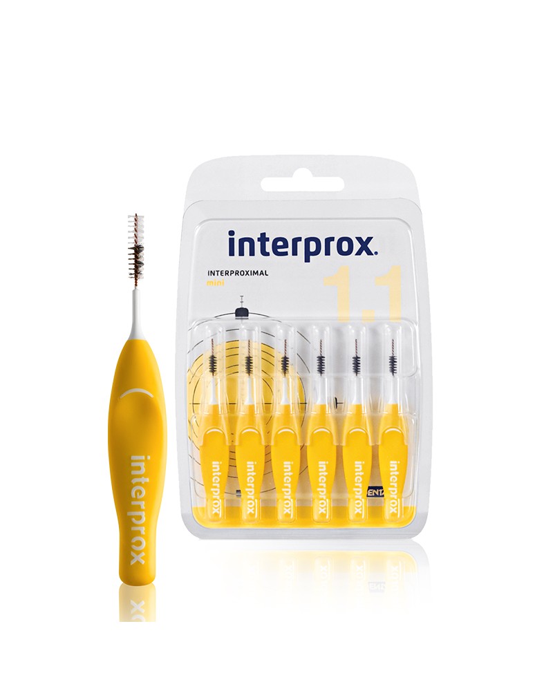 • Cepillos interproximales de marca DENTAID en blister con 6 unidades rectas tamaño mini (1,1 mm), con capuchón protector individual.
