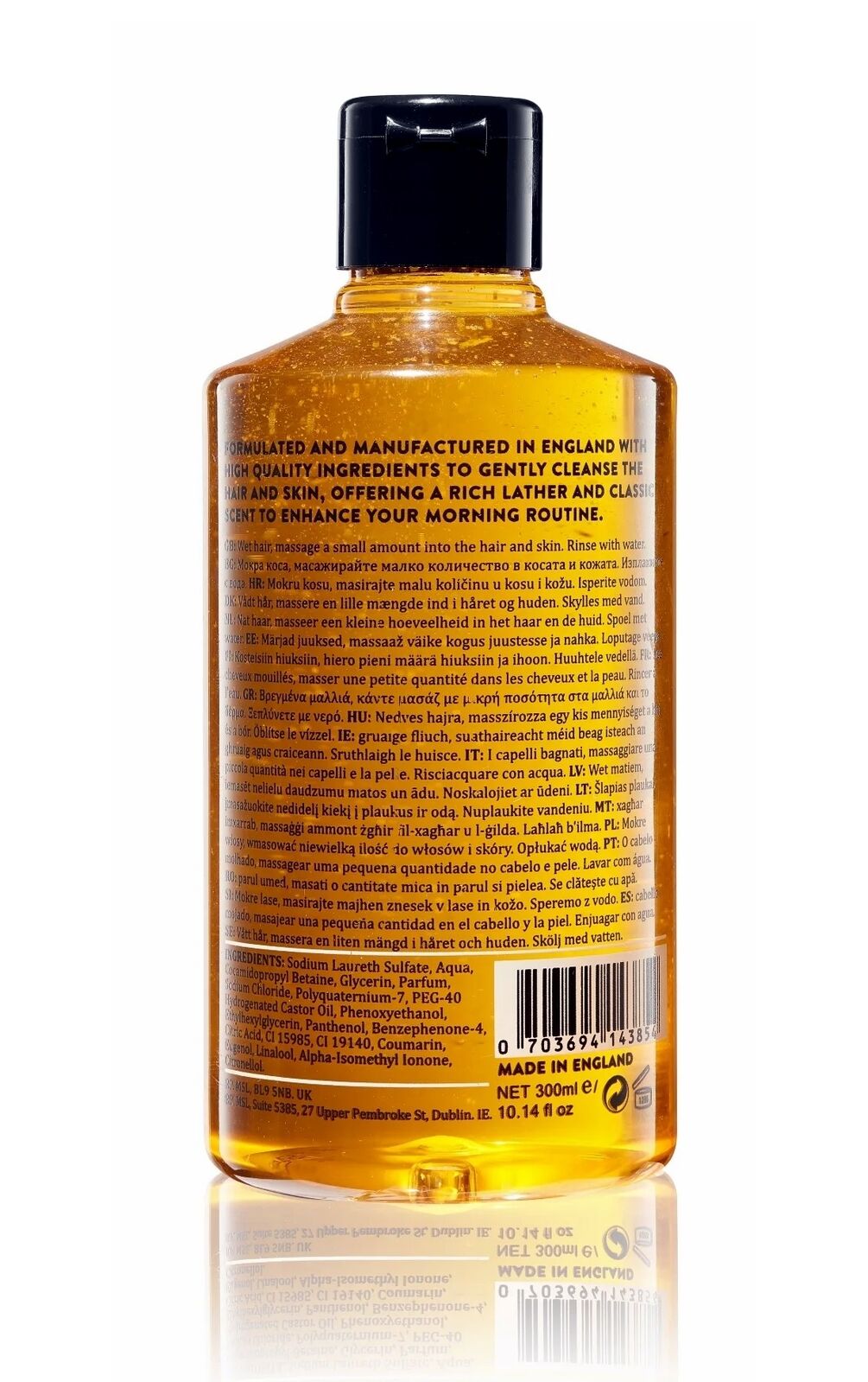 • Champú 2 en 1 para higiene masculina, apto para cabello y cuerpo en un solo paso.