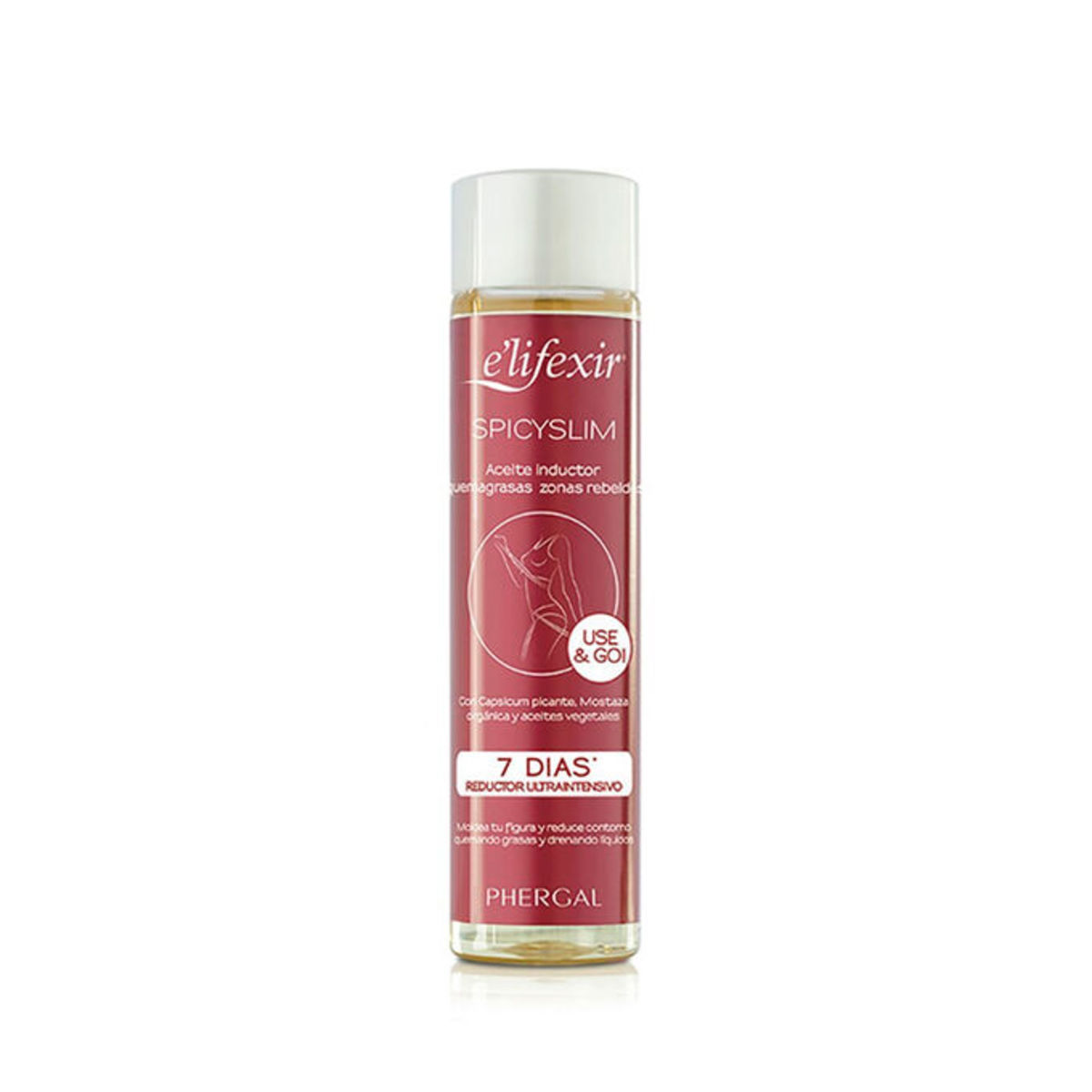 Elifexir SPICYSLIM es un aceite seco inductor quemagrasas de zonas rebeldes. Un innovador tratamiento ultraintensivo que garantiza resultados visibles en tan solo 7 días*.