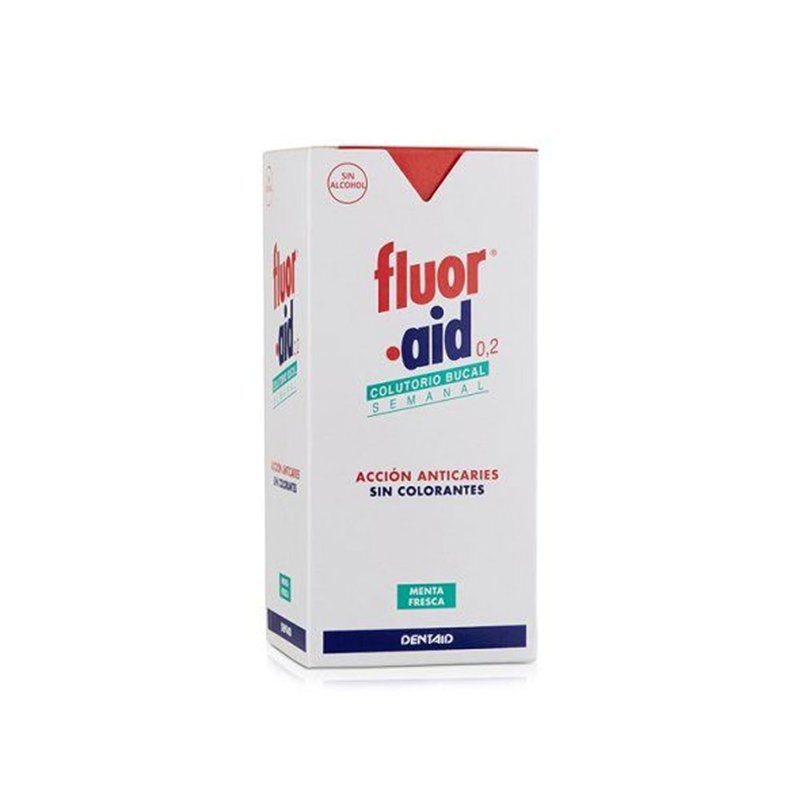 - Colutorio fluorurado de uso semanal en formato enjuague bucal.