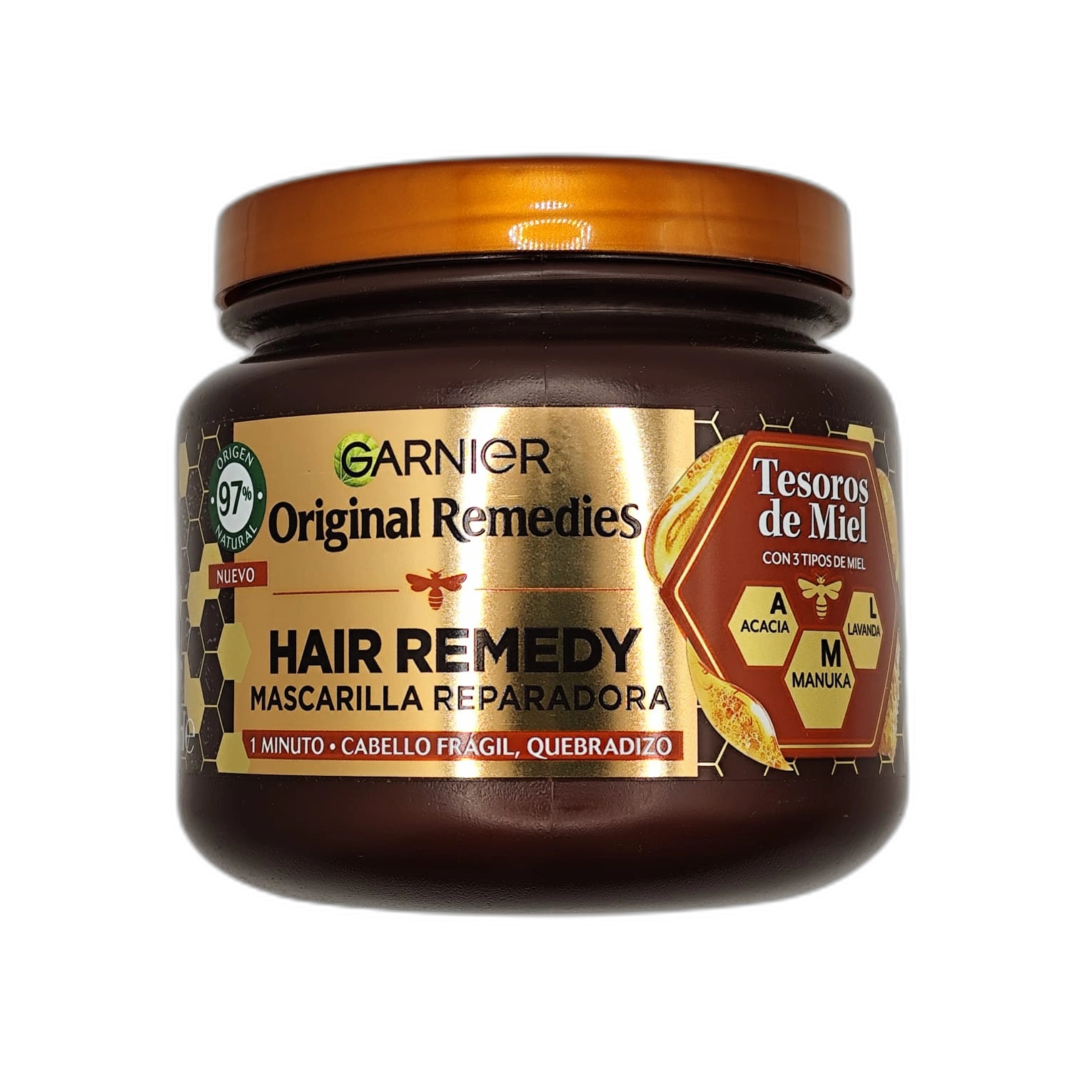 - Fórmula inspirada en los tesoros de la colmena, con miel y derivados apícolas asociados al cuidado intensivo del cabello.