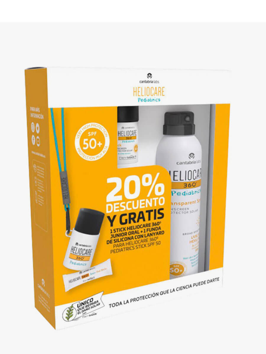 Heliocare Pack 360º Pediatrics Stick + Transparent Spray es un set de protección solar especialmente formulado para la piel delicada de los niños. Incluye un stick para proteger zonas sensibles y un spray transparente de fácil aplicación.