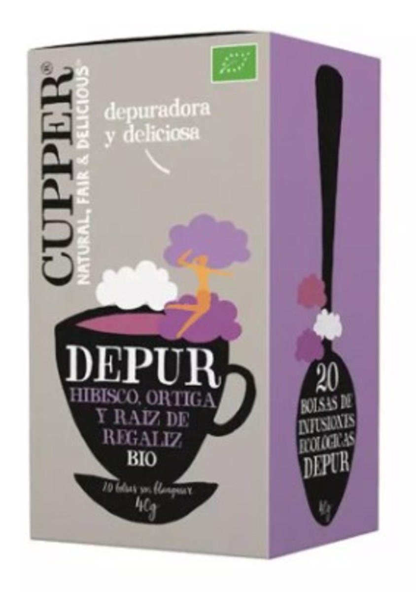 Infusión depurativa orgánica en formato de 20 bolsas de la marca Cupper.