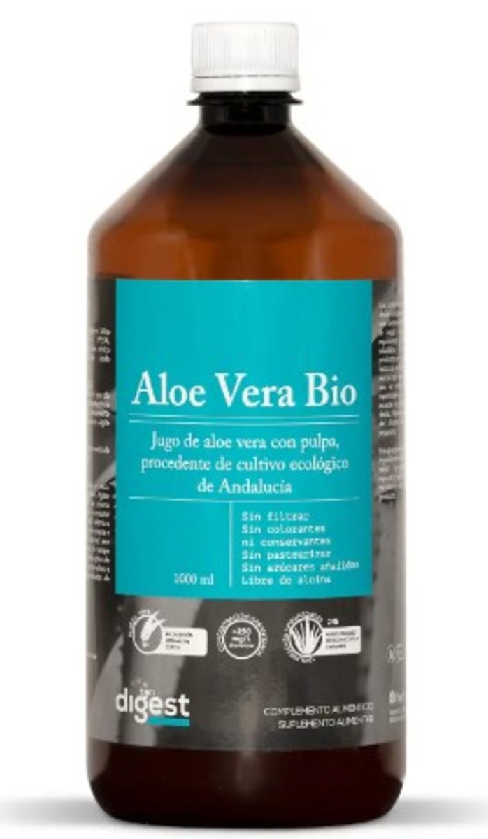Beneficios del producto: Jugo de Aloe Vera Bio con propiedades hidratantes y regeneradoras para la piel.
