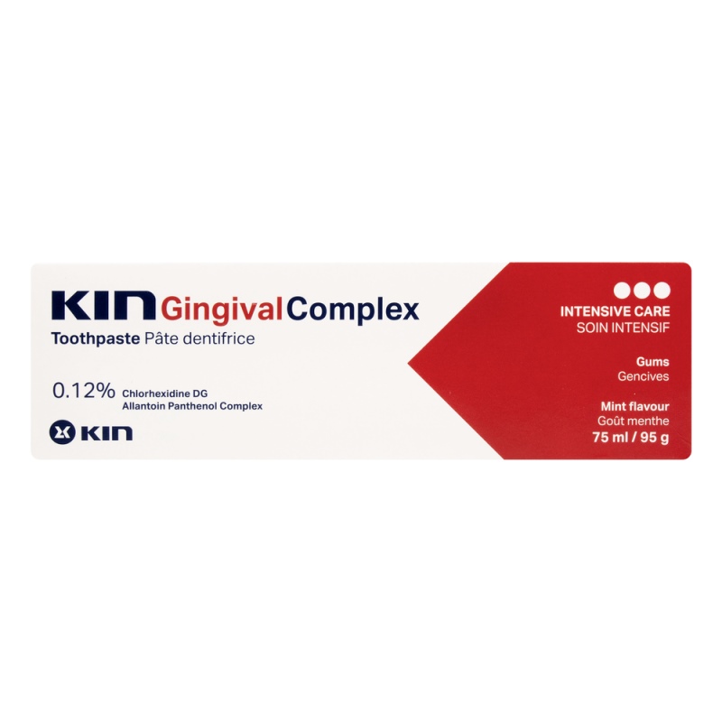 - Pasta dentífrica de 75 ml en tubo para el cuidado intensivo de las encías, especialmente durante y tras procedimientos odontológicos.