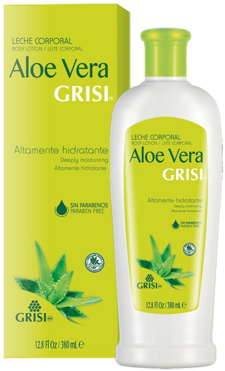 Leche corporal con Aloe Vera de la marca Grisi, ideal para hidratar y suavizar la piel.