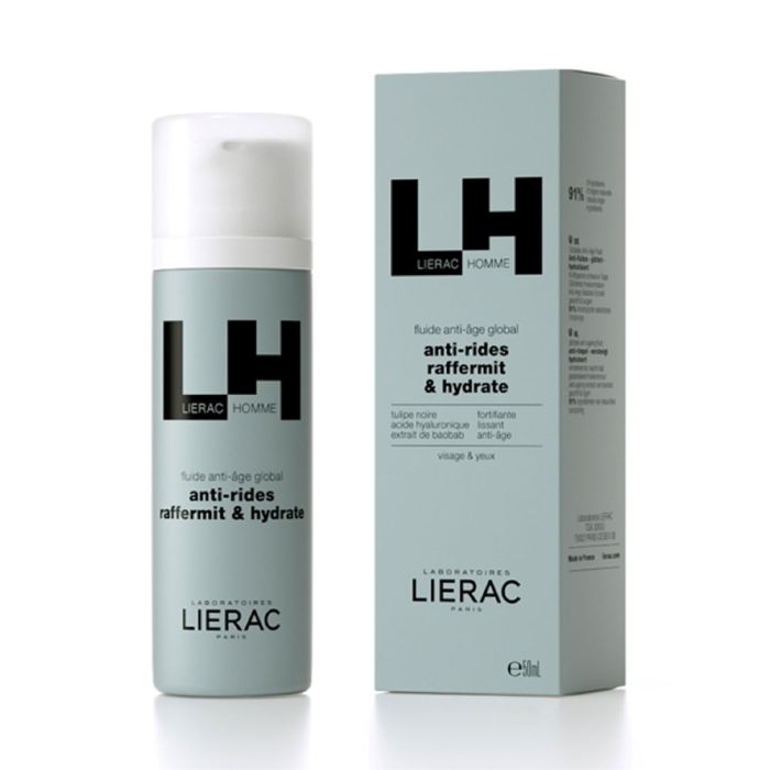 - Fluido facial hidratante anti-edad específicamente formulado para la piel del hombre.