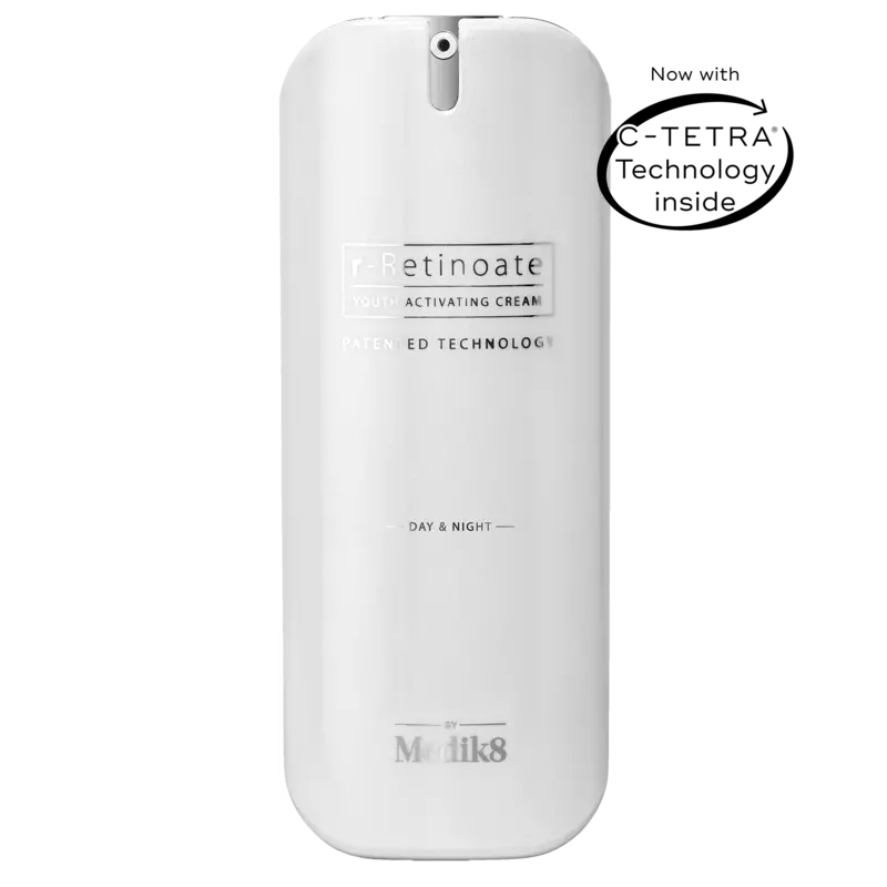 - Incluye una molécula patentada de retinil retinoato desarrollada tras años de investigación, hasta 8 veces más potente que el retinol tradicional y diseñada para minimizar la irritación