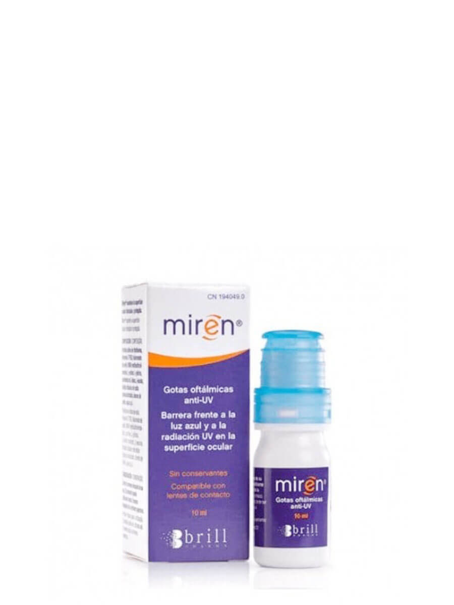 DESCRIPCIÓN DEL PRODUCTO: Miren gotas oftálmicas anti-uv 10 ml es un producto para el cuidado de los ojos que ayuda a protegerlos de la radiación ultravioleta (UV) y a aliviar la irritación ocular. Se presenta en un frasco de 10 ml con un gotero para facilitar su aplicación.