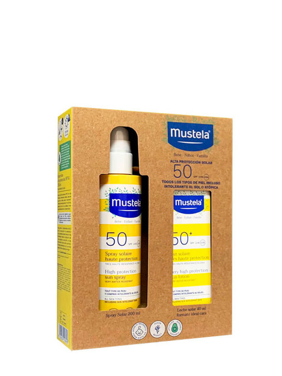 Más info de Mustela pack spray solar corporal + leche solar facial spf 50+