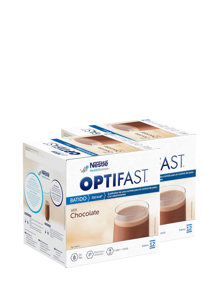 Optifast Batido Duplo Sabor Chocolate es un producto diseñado para ayudar en la pérdida de peso de forma saludable y equilibrada. Viene en un pack de 2 cajas con 12 sobres cada una.
