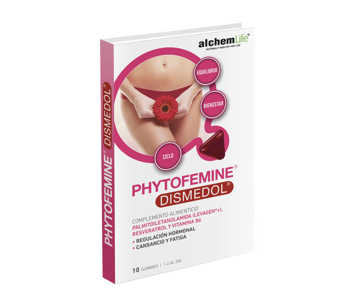 Phytofemine Dismedol es un complemento alimenticio a base de Levagen+ (PEA), Resveratrol y Vitamina B6.