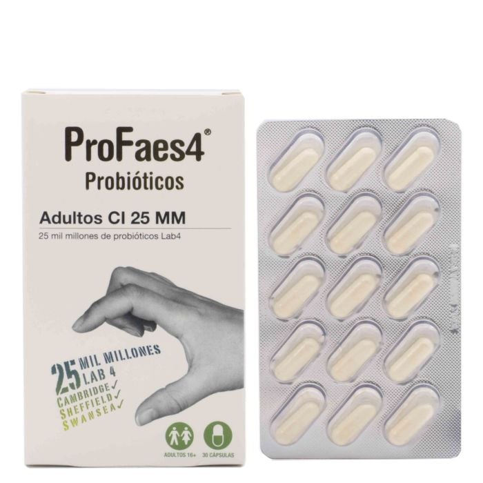 Profaes4 Probióticos Adultos 25 mm, complemento alimenticio, 30 cápsulas cantidad