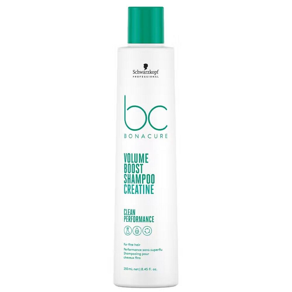 - Champú líquido de la línea Bonacure Volume Boost para cabello fino y sin brillo