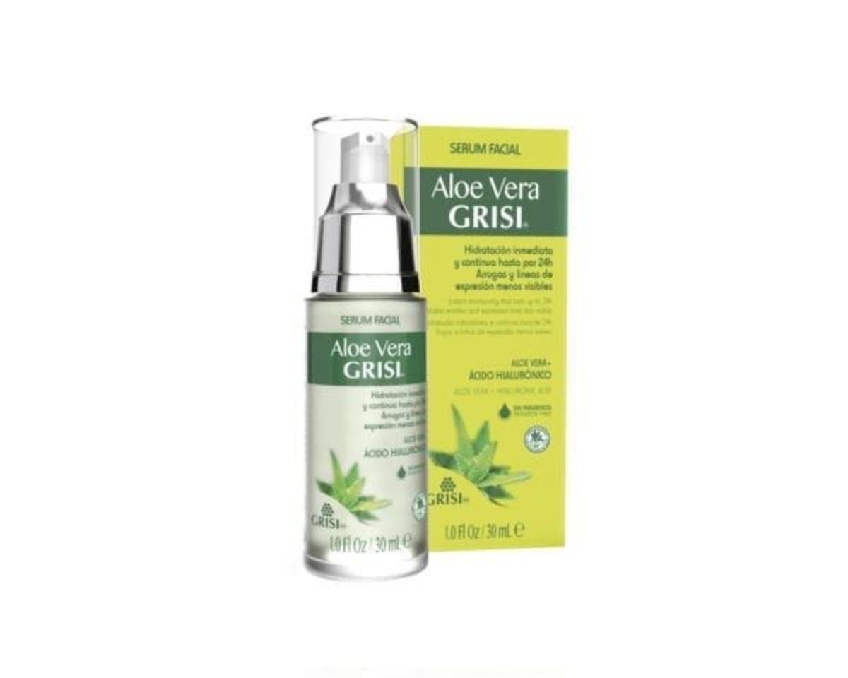 Sérum facial con Aloe vera y ácido hialurónico, ideal para hidratar y rejuvenecer la piel.