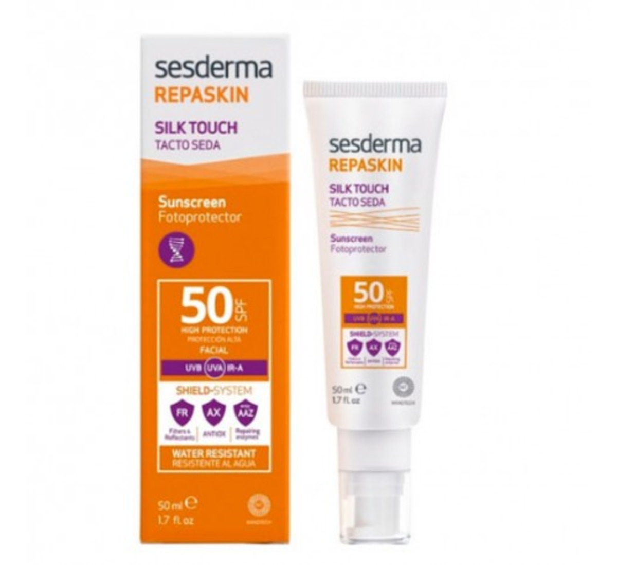 / Sesderma repaskin fotoprotector facial toque seda SPF 50 50ml