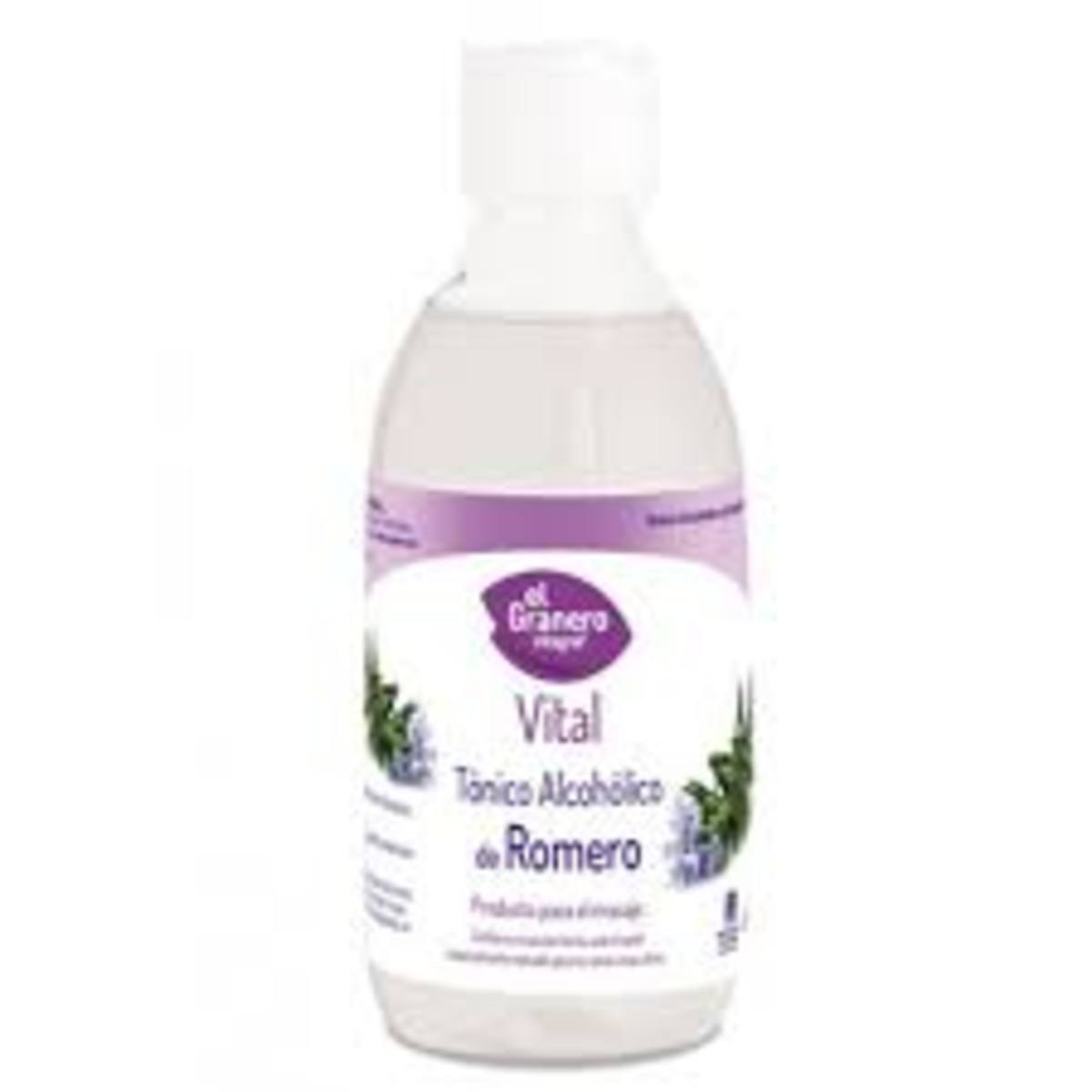 Tónico alcohólico de romero de 250 ml de la marca El Granero. Ideal para tonificar la piel y revitalizar el cabello.
