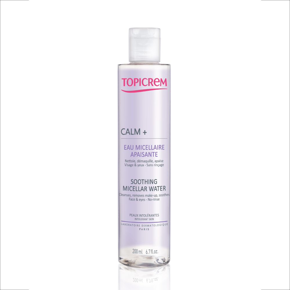 - Agua micelar limpiadora y calmante Topicrem para pieles intolerantes.