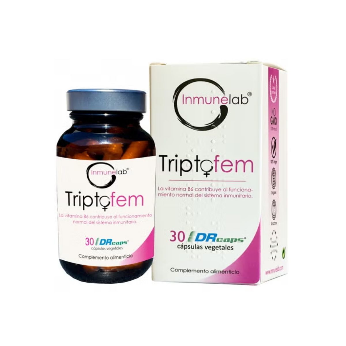 TRIPTOFEM es un suplemento natural en forma de cápsulas elaborado por Inmunelab. Contiene triptófano, un aminoácido esencial que el cuerpo utiliza para producir serotonina, la hormona responsable de regular el estado de ánimo y el sueño. Este producto es ideal para aquellas personas que buscan mejorar su bienestar emocional y combatir el estrés y la ansiedad de forma natural.