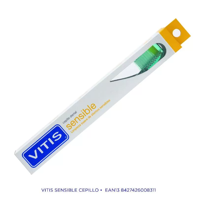 - Cepillo dental manual para uso diario en personas con sensibilidad dental y encías delicadas.