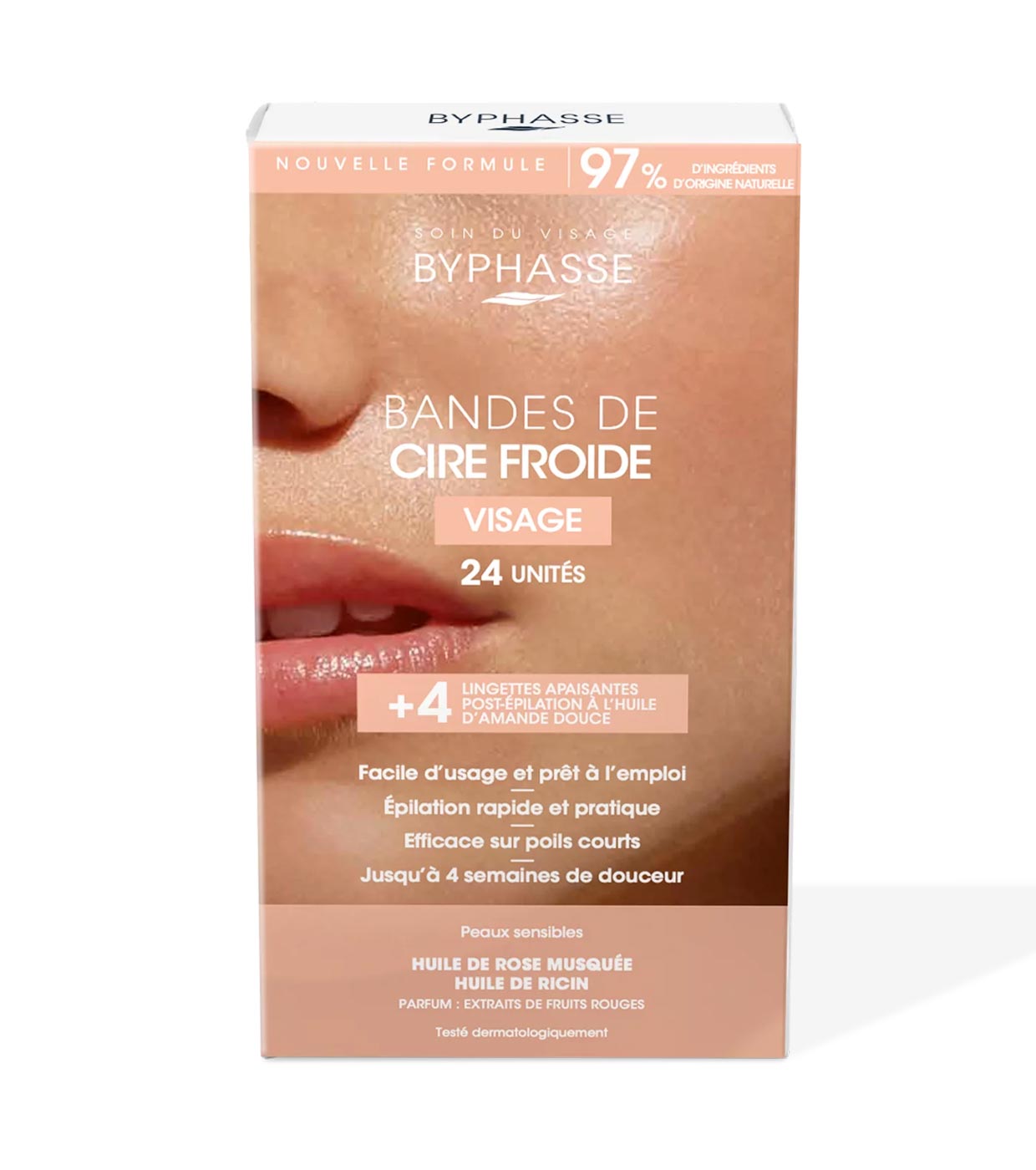 - Kaltwachsstreifen speziell für das Gesicht, ideal für kleine Bereiche wie Oberlippe, Kinn, Wangen und Stirnzwischenraum.