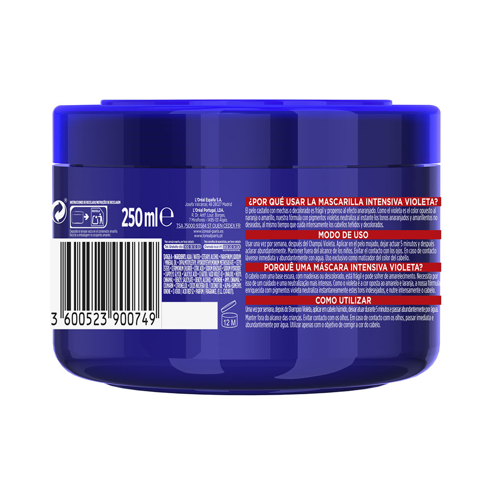 - Maschera intensiva per capelli viola in vasetto da 250 ml, ideale per capelli biondi, decolorati, con mèches o grigi.
