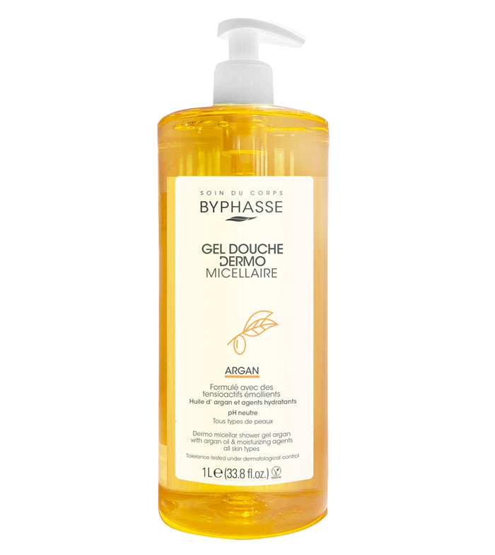 - Gel de ducha dermo-micelar com óleo de argão em formato familiar de 1 L, ideal para o uso diário de toda a família.