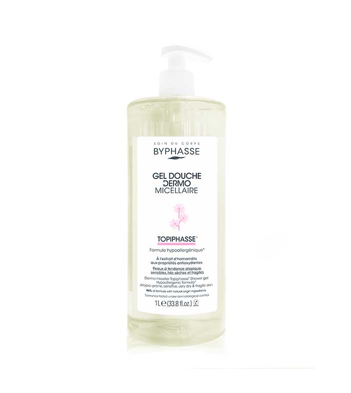 - Gel de ducha dermo-micelar para a higiene diária de todo o corpo.
