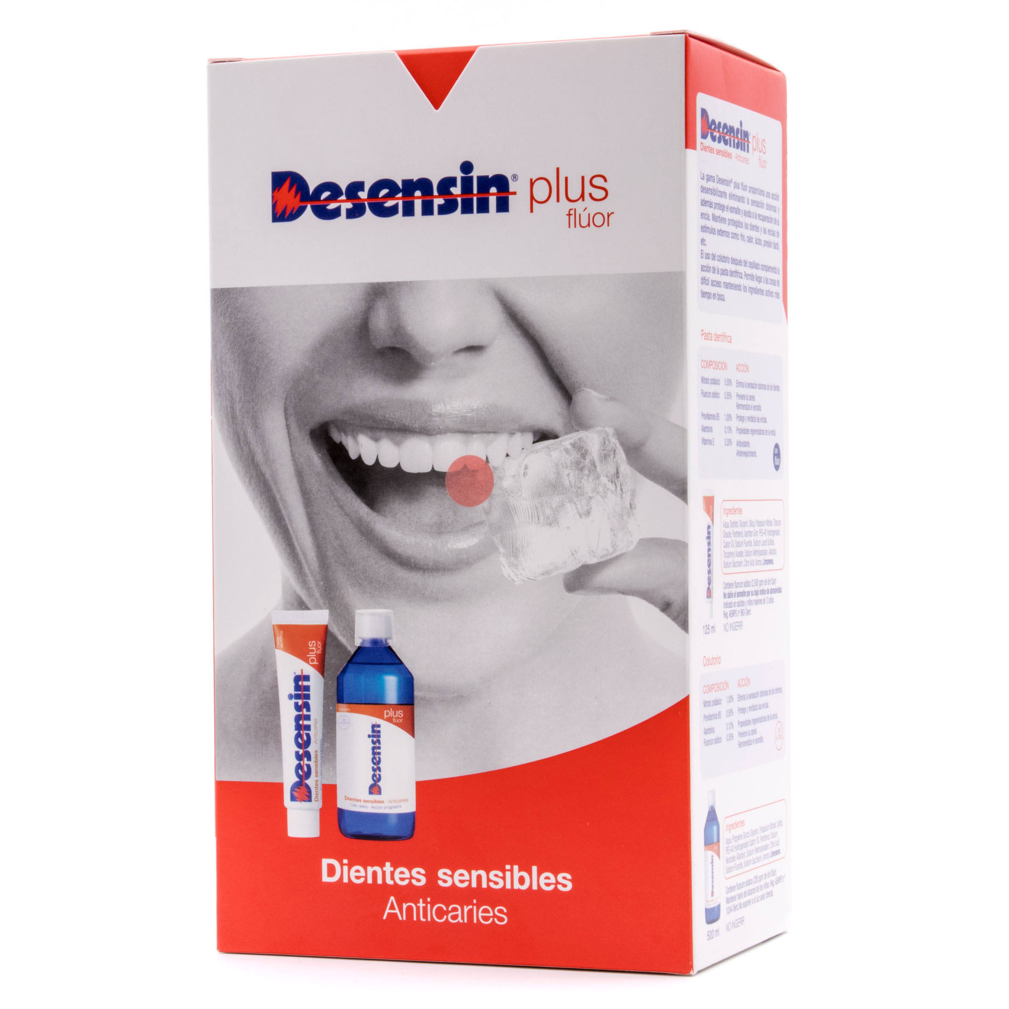 - Pack promocional que combina pasta dentífrica e colutorio para um tratamento integral da sensibilidade dental.